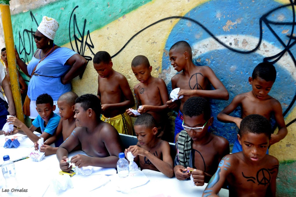 O sorriso inocente das muitas crianças que brincavam desde cedo pelas ruas e becos da comunidade contrastavam com o olhar apreensivo e atento de senhoras e senhores e com a revolta verbalizada e exposta pelos jovens moradores do bairro. A postura era de poucas palavras e muita desconfiança, principalmente por conta da presença de equipes de TV que acompanharam a atividade.